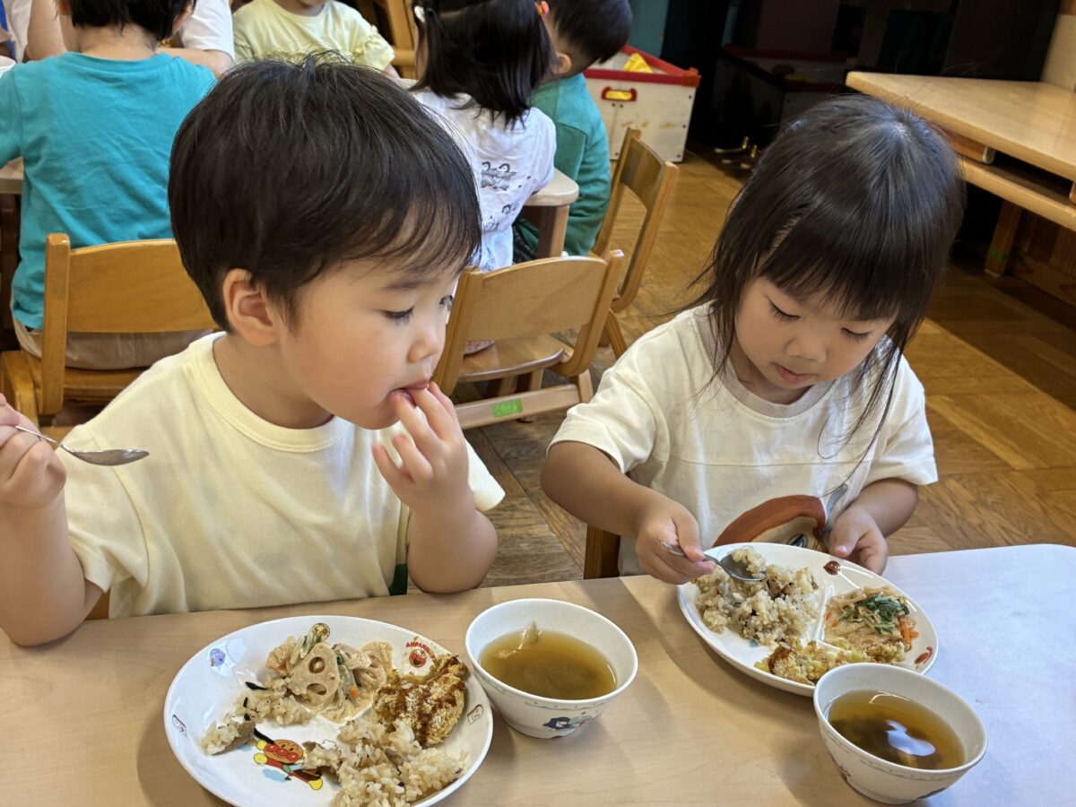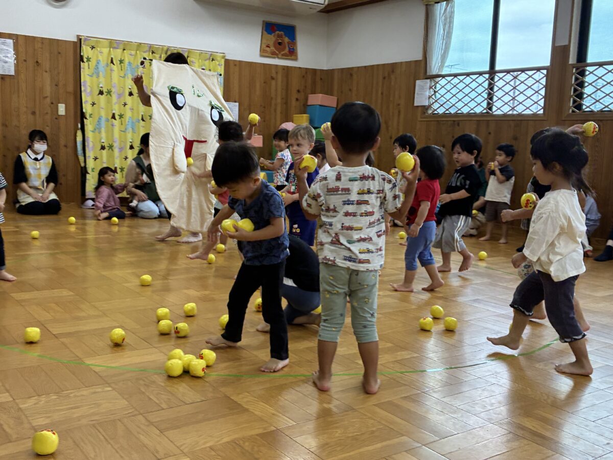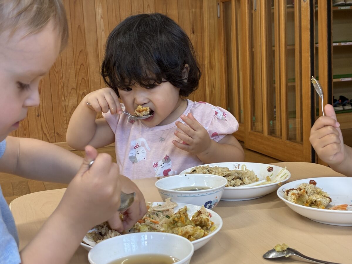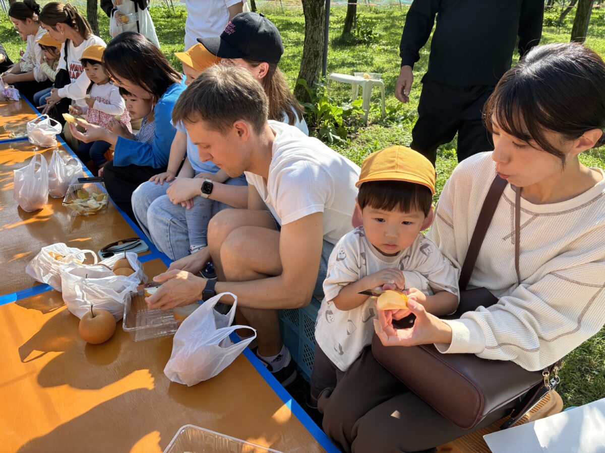 活動日記 DIARY 活動日記 9月 メロン組活動日記 2025年10月16日 ずっと楽しみにしていたメロン組の親子遠足!気持ちの良い秋晴れの中、北会津・よよぜんさんに梨狩りに行ってきました。農園の方のお話をしっかり聞いて梨狩りスタート♪お家の方に剥いてもらって青空の下で食べる梨の味は格別においしかったです♪ スポーツの秋!そして食欲の秋の始まりです‼ たくさん身体を動かすとご飯がより進みます。毎日美味しい給食をいっぱい食べて、元気もりもりのメロン組です♪ 新しい記事へ古い記事へ 活動日記一覧に戻る