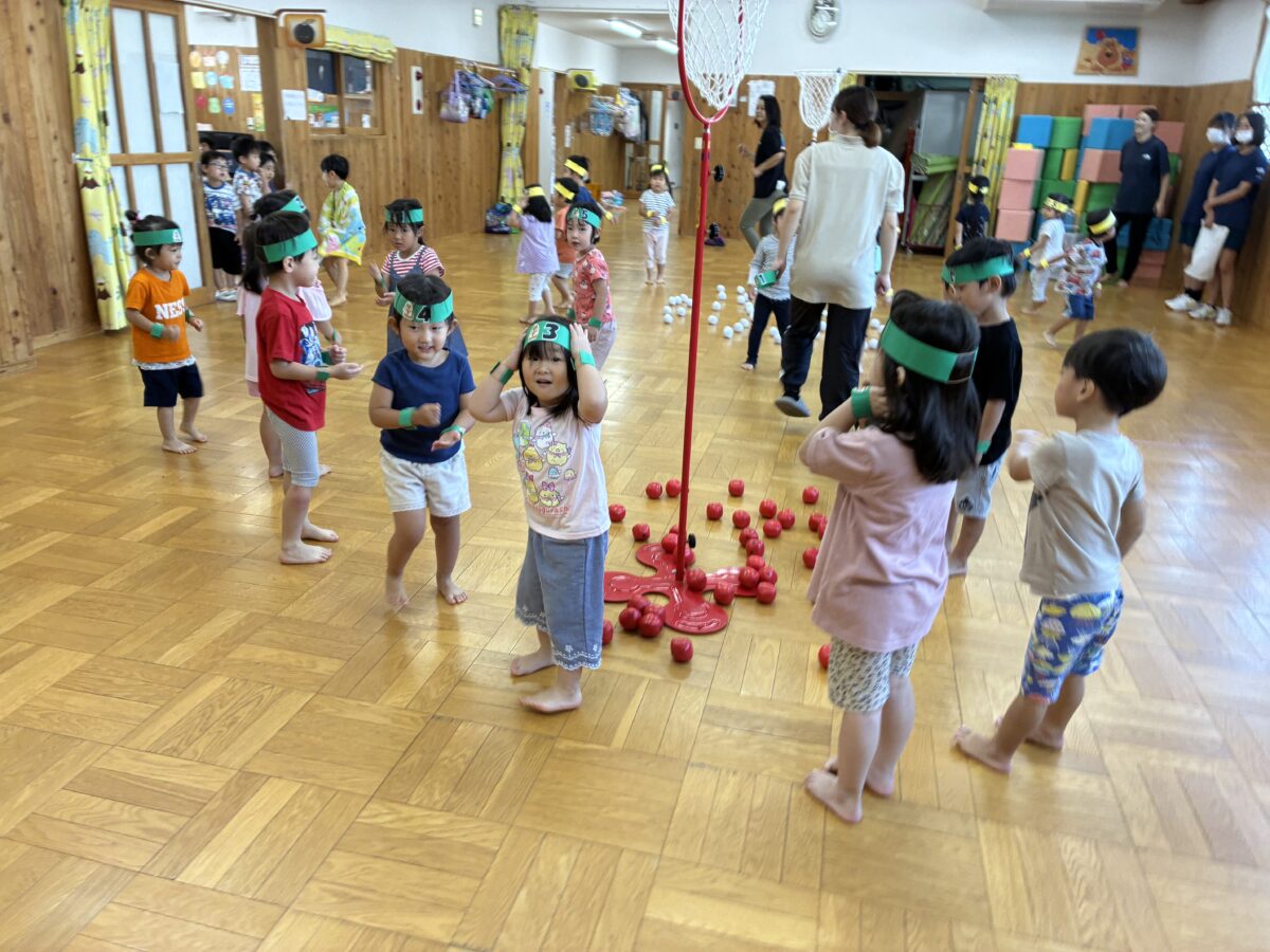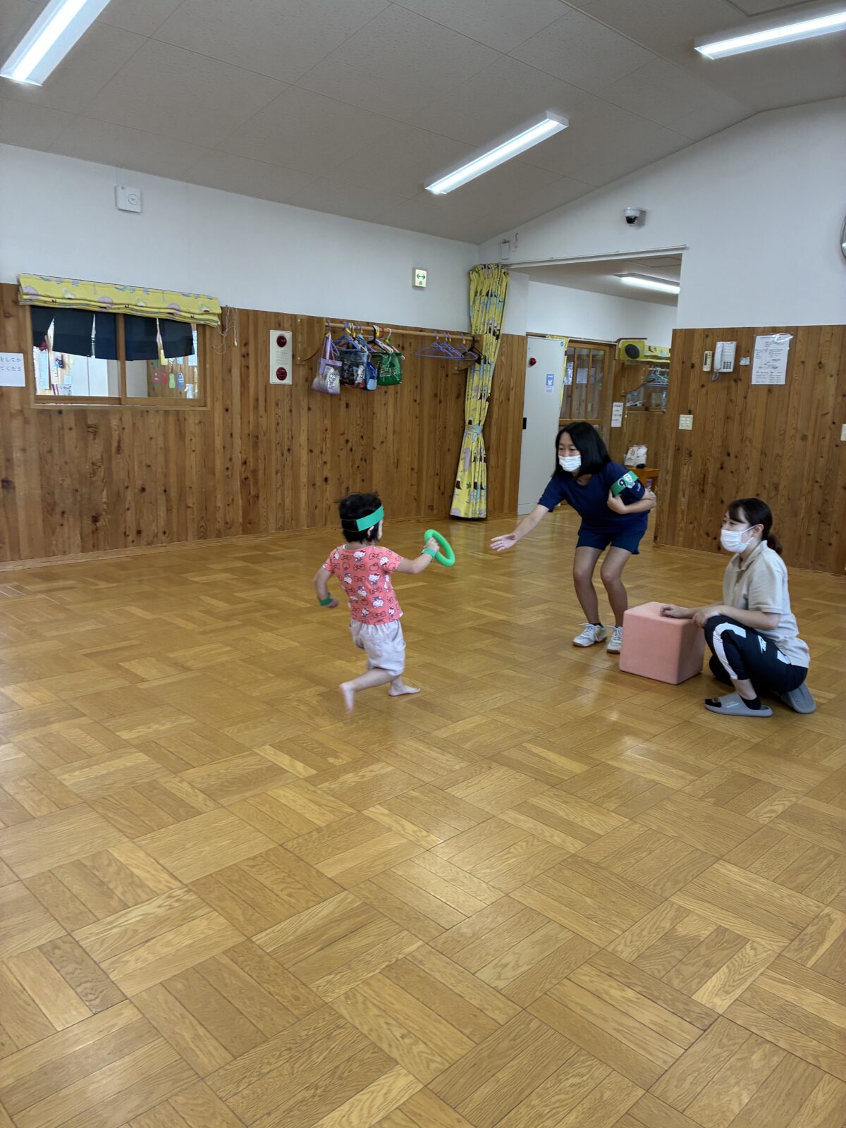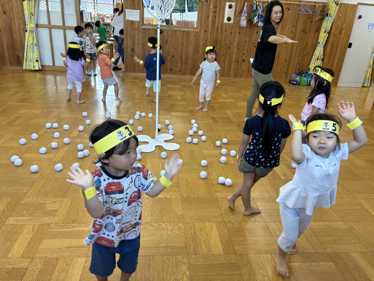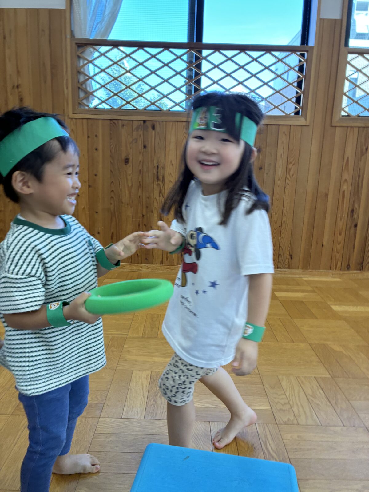初めての運動会に向けて練習を頑張るレモン組さん。始めはバラバラだったチームがだんだんとチームとしての意識が高まり黄色チーム・緑チームそれぞれで「負けないぞ」という気持ちになっています。