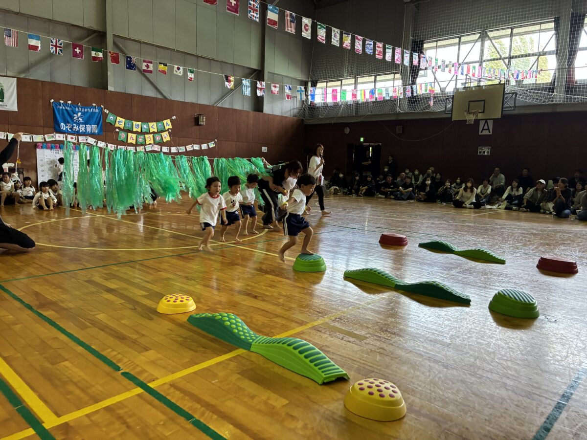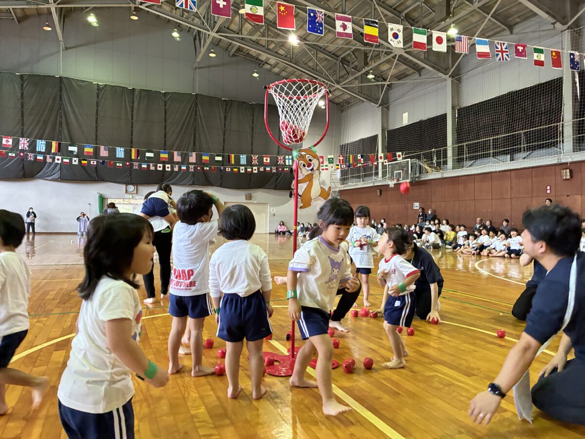 10月は運動会がありました。初めての場所での運動会はドキドキや不安でいっぱいでしたが、とても頑張りました!ダンシング玉入れでは大好きな音楽に合わせて元気よく踊り、玉入れもお友だちと力を合わせて玉を入れることが出来ました。