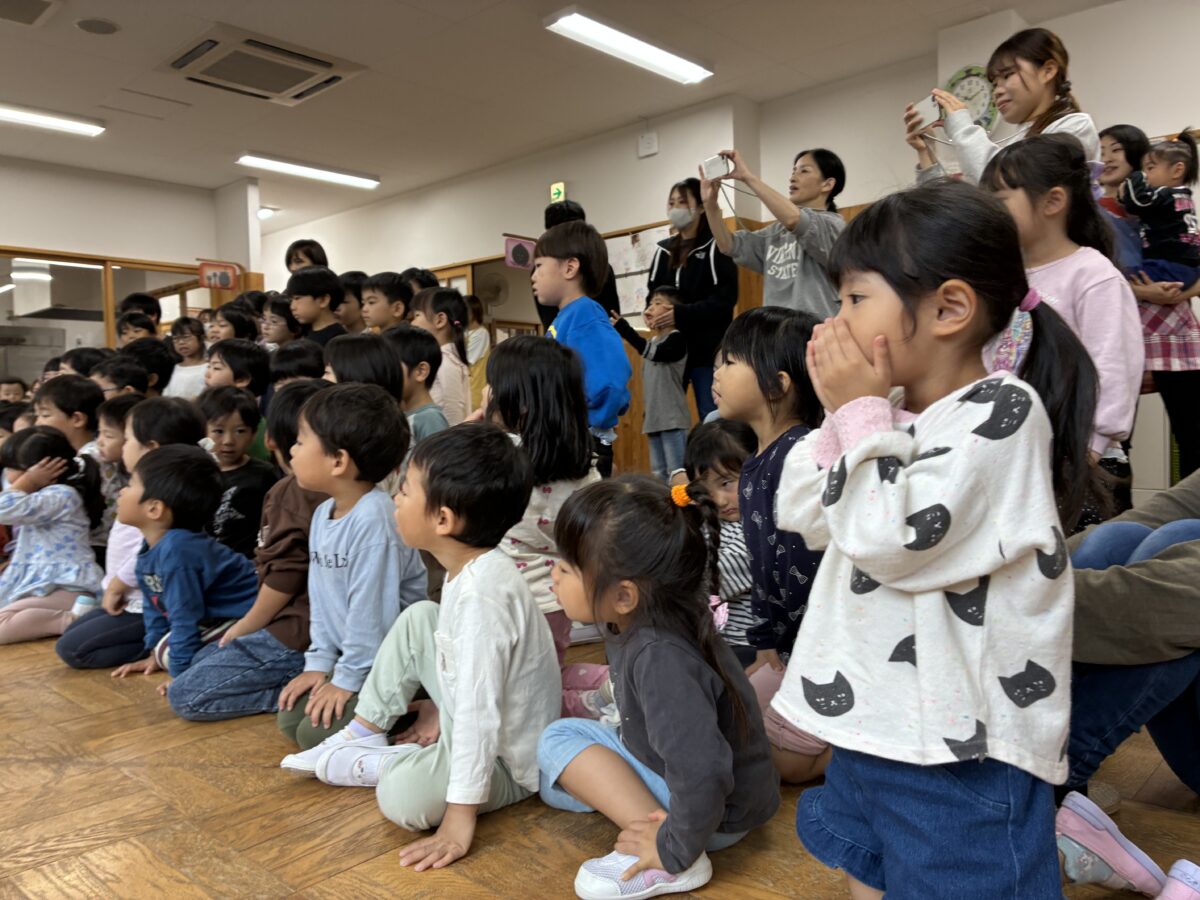10月は立ち合い訓練があり実際に消防士さんが来て「おはしもち」のお話を聞きました。
