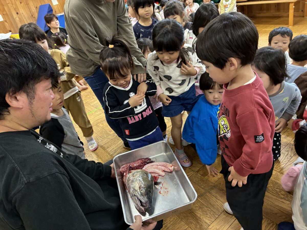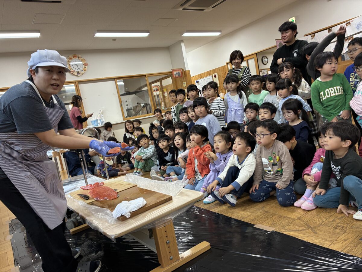鮭の解体ショーもあり、初めて見る魚の解体に驚く声が聞かれました。