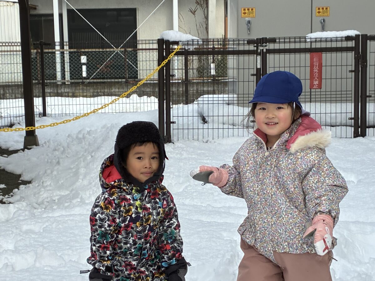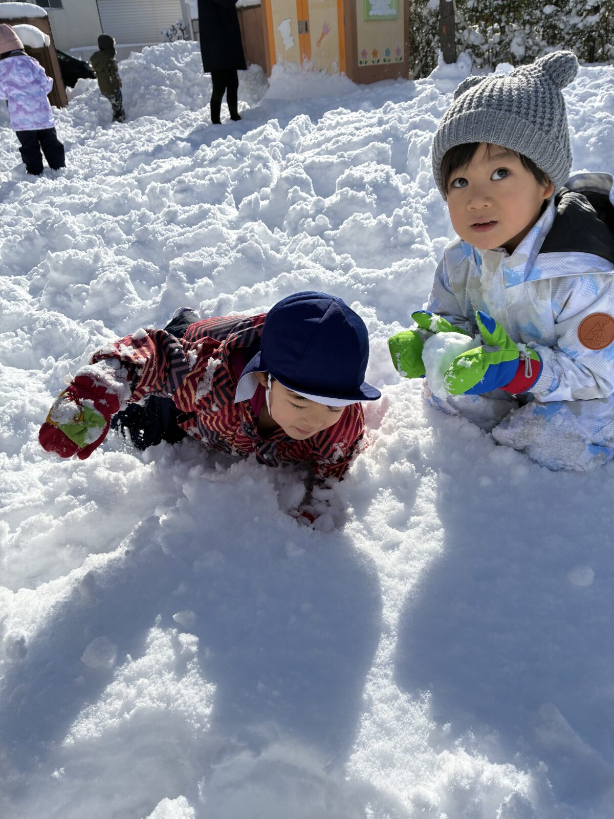 園庭に雪が積もり子どもたちが待ちに待った雪遊びをしました。