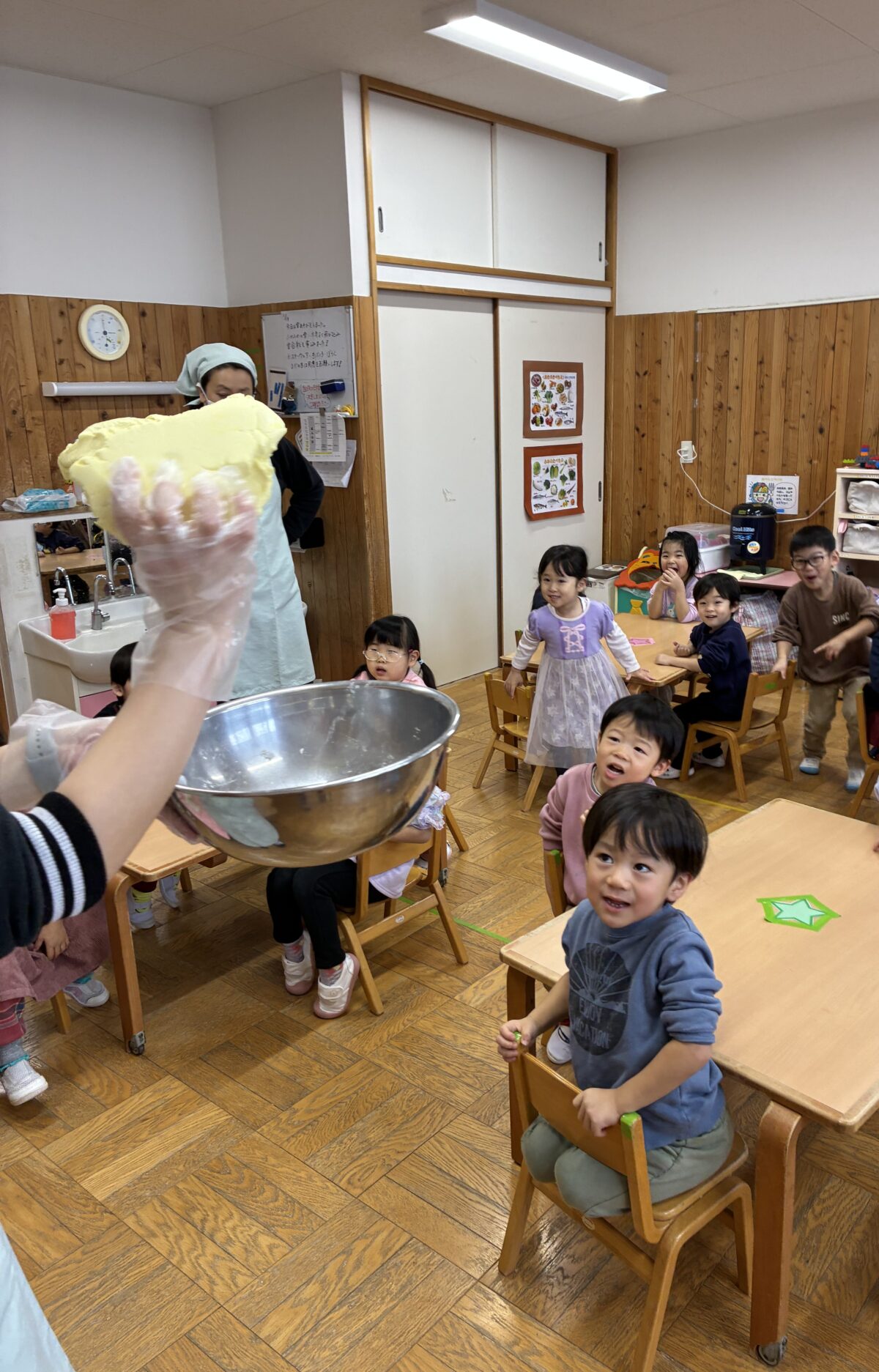 だんごさしの行事に参加しました。粉から水を加えて一つの塊になり、団子になる工程を見ることが出来ました。