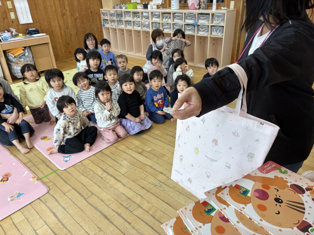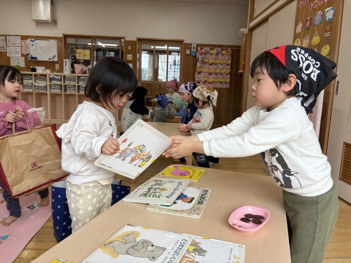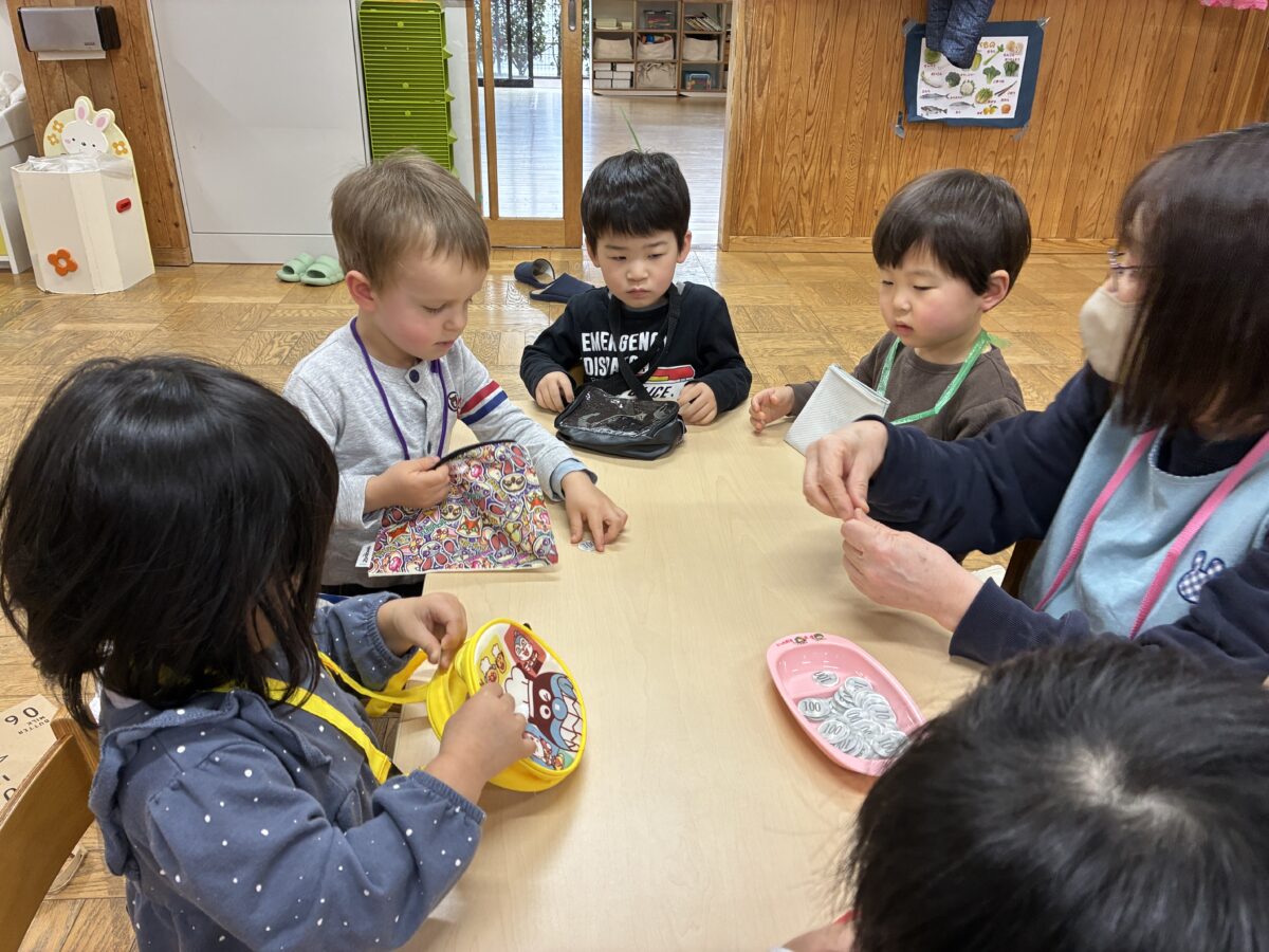 年中組の子どもたちがお店屋さんになってくれて、お買い物ごっこを楽しみました。
