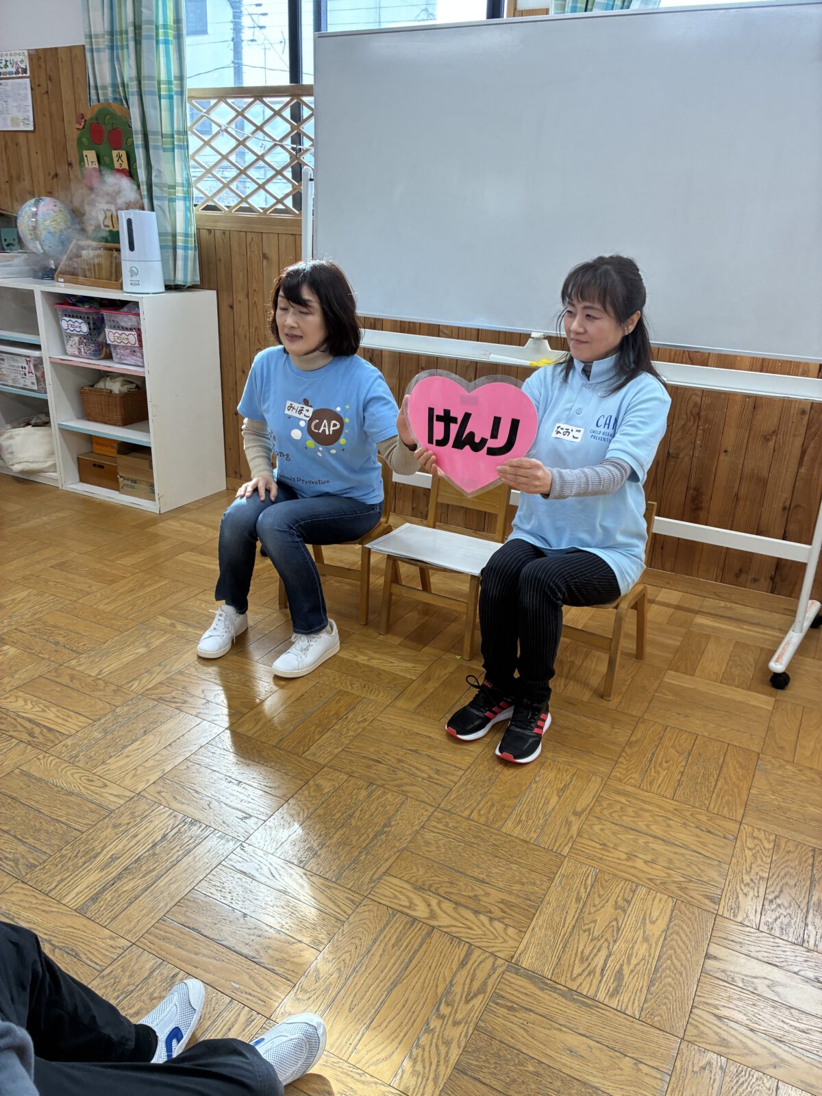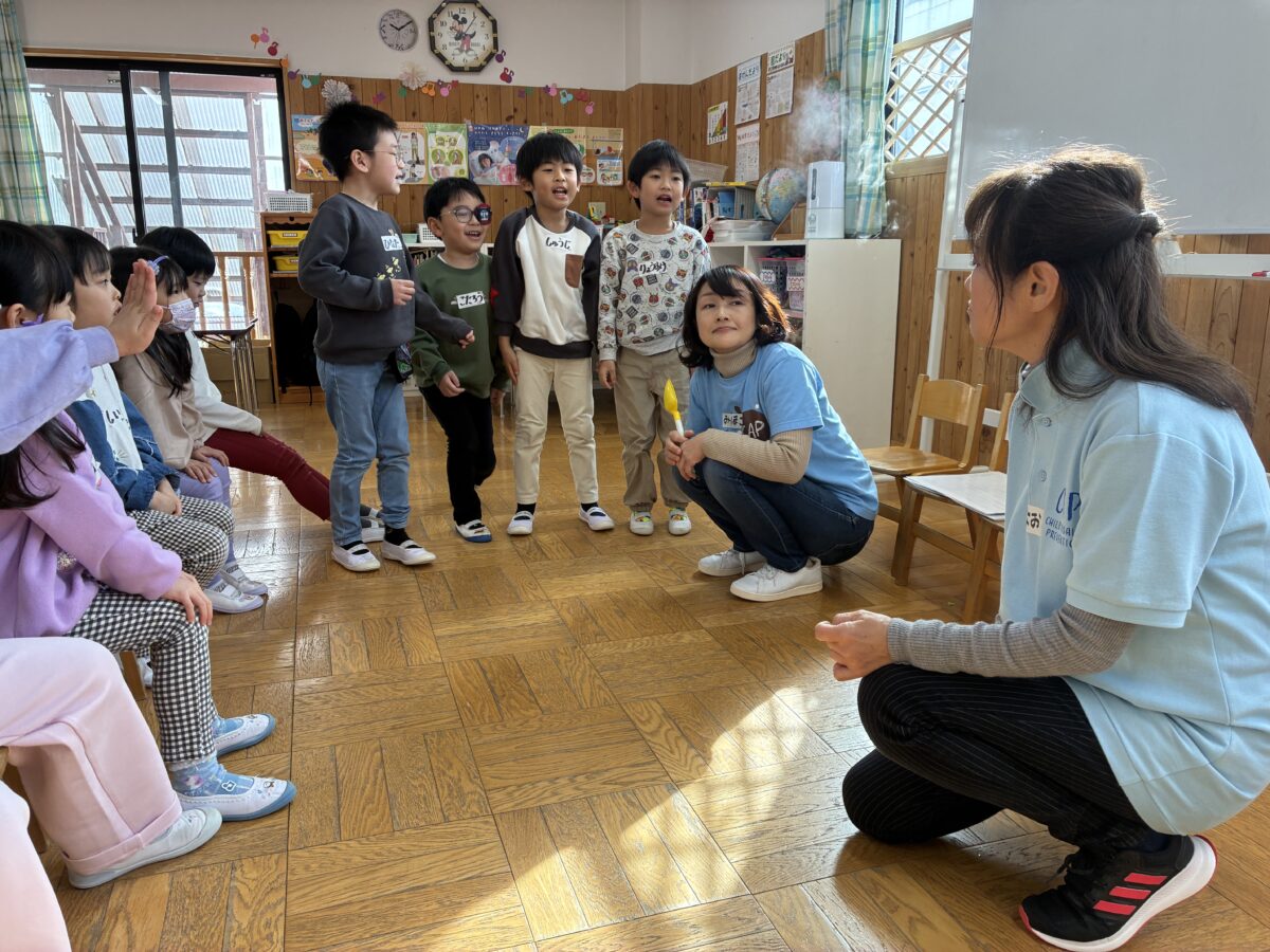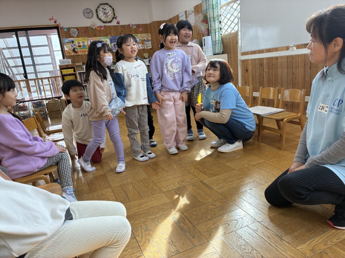 あいづCAPの幼児向けプログラムがありました。子どもたちは楽しい活動を通して、「自分は大切な存在であること」や「いやなときはいやと言ってよいこと」を学びました。これからも子どもの気持ちに耳を傾け、安心して思いを伝えられる環境を大切にしていきたいと思います。