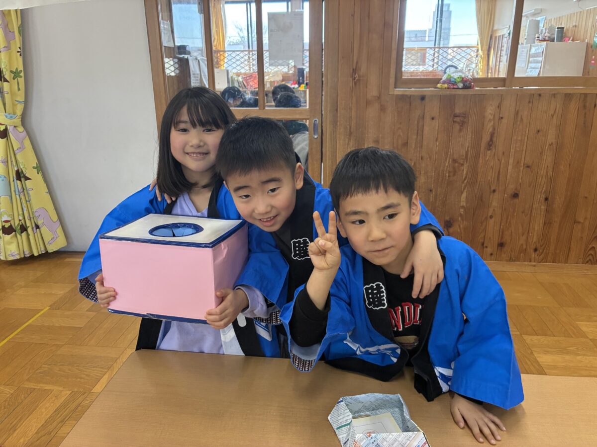 豆まきでは、心の中にいる“やっつけたい鬼”を退治しました。