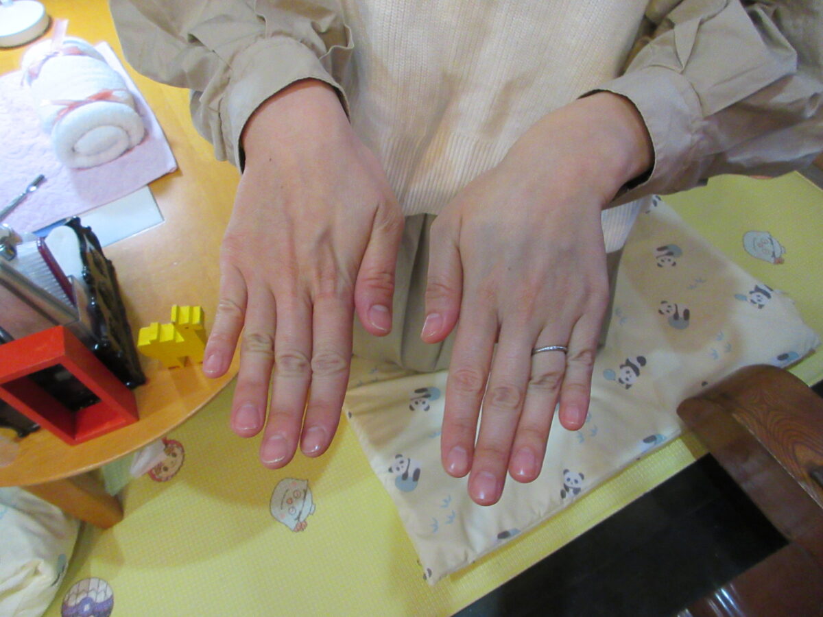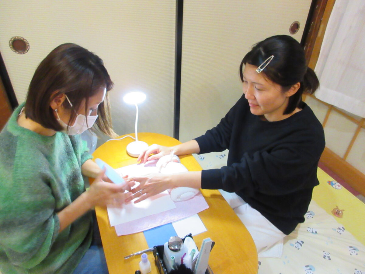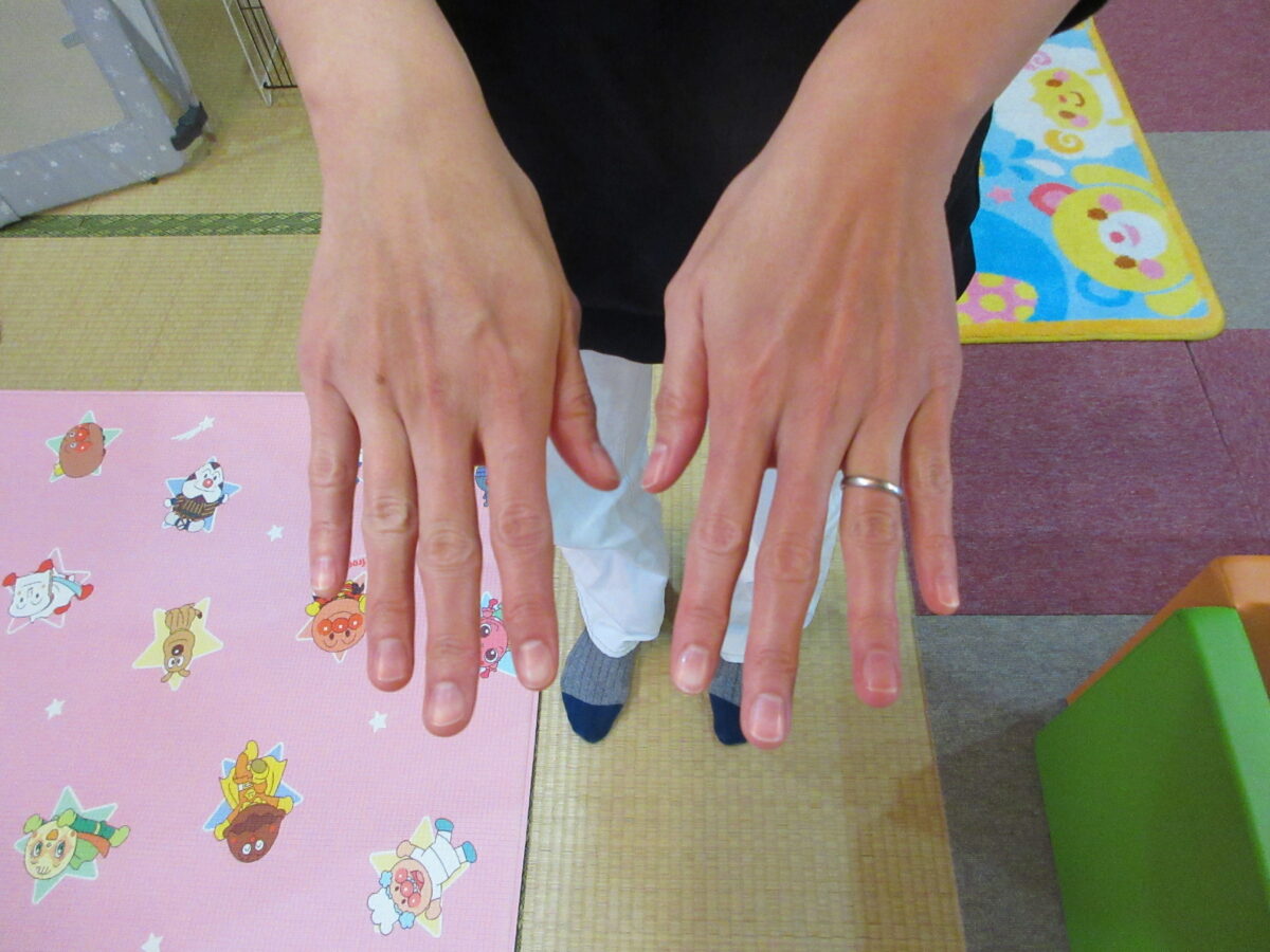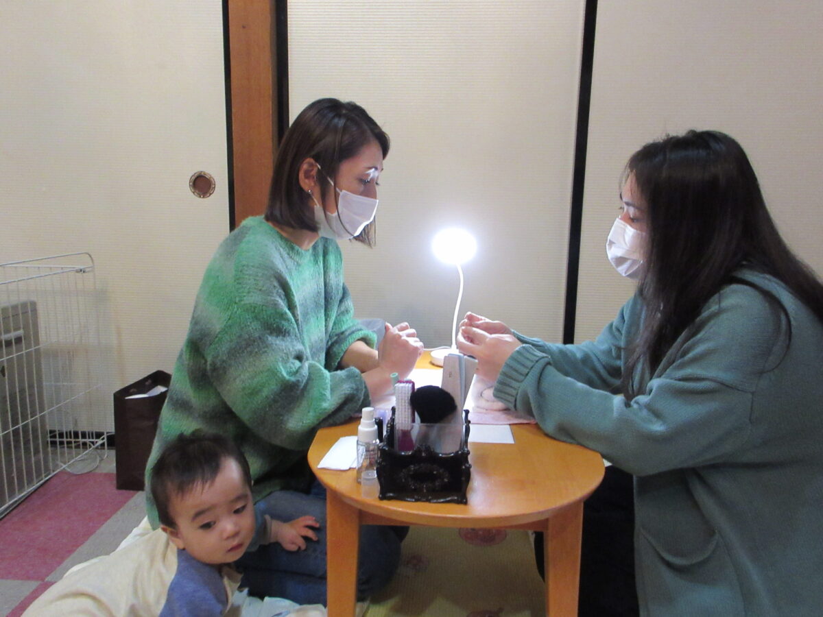 11月6日(木)に講師の先生をお呼びして、ネイルケア体験をしました。両手爪のケアをしてもらいながらネイルやハンドの自宅でのケアのコツを教えて頂き、これから寒くなる時期のお家でのケア楽しくできそうですね!ママたちがネイルケア体験をしていると気になって一緒に見たり、職員と遊んでいたり楽しんでいました😊また、同じくらいの月齢のお友だちとの触れ合いをして笑いあう姿も見られました!子育てや家事で自分のケアまではなかなか時間がなく手が回らないママたちに少しでも気分転換やリフレッシュになればと思います。皆さまもどうぞご自愛ください♡
