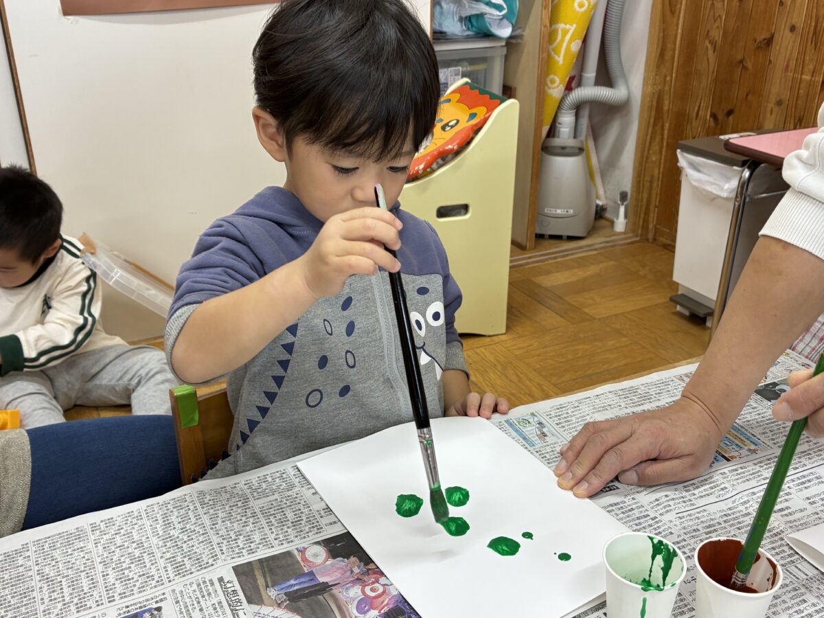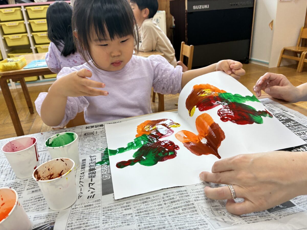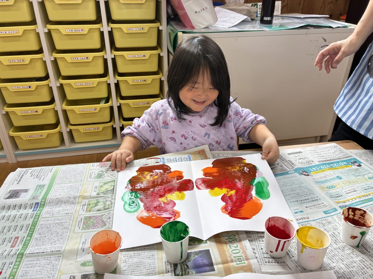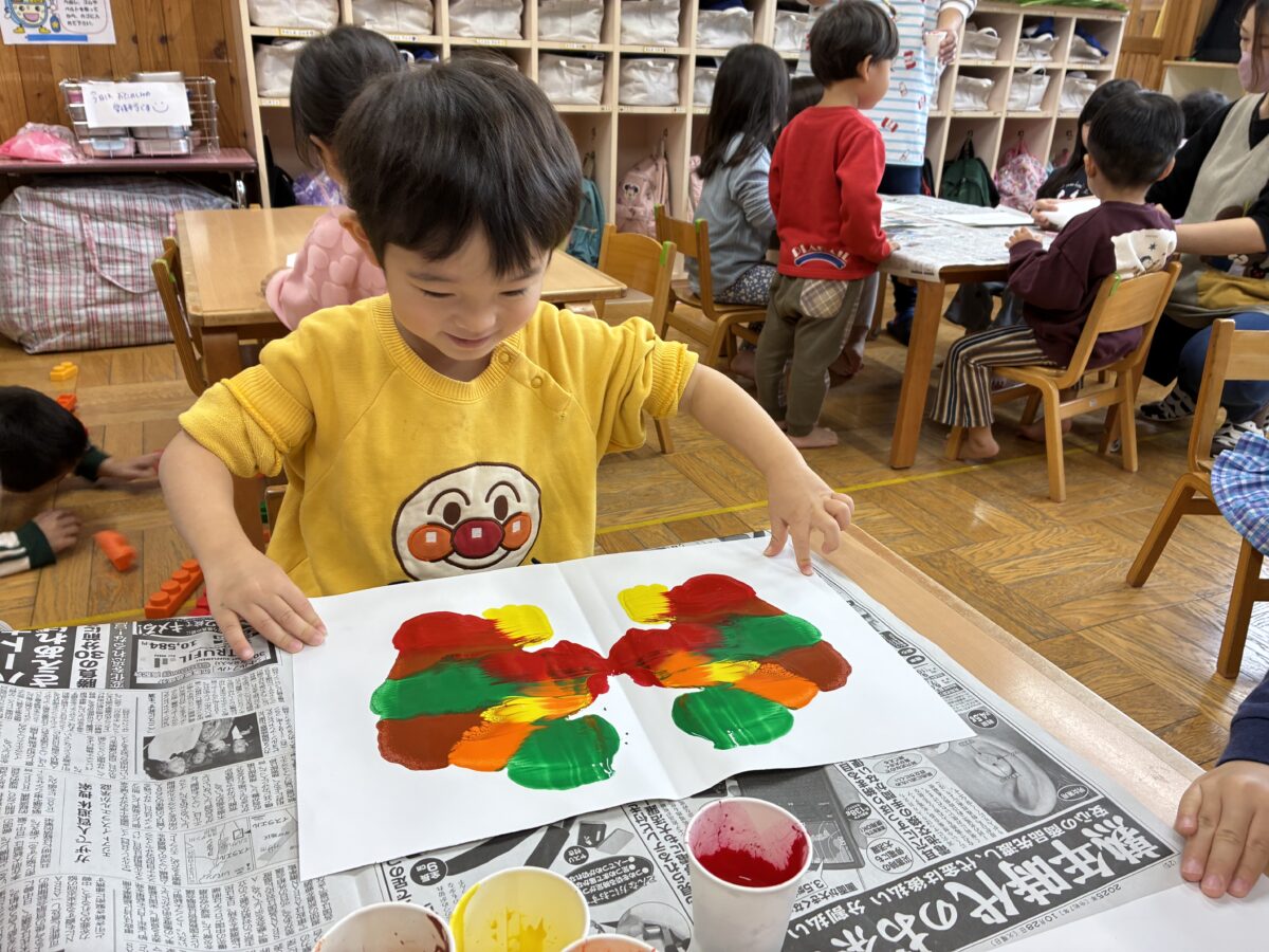 お知らせ NEWS お知らせ レモン組 11月活動日記 2025年12月2日 寒さが厳しくなりましたが「外に行きたい!」と寒さを感じないくらい元気なレモン組です。園庭にある木の葉も色づき「葉っぱが赤い!」「葉っぱがいっぱい落ちてる」と秋の終わりを感じてる子もいます。 製作活動ではデカルコマニーという技法を使って秋らしい製作をしました。 絵の具を垂らして画用紙を開いた時の瞬間が子どもたちの驚きの声が聞こえてきました。 新しい記事へ古い記事へ お知らせ一覧に戻る