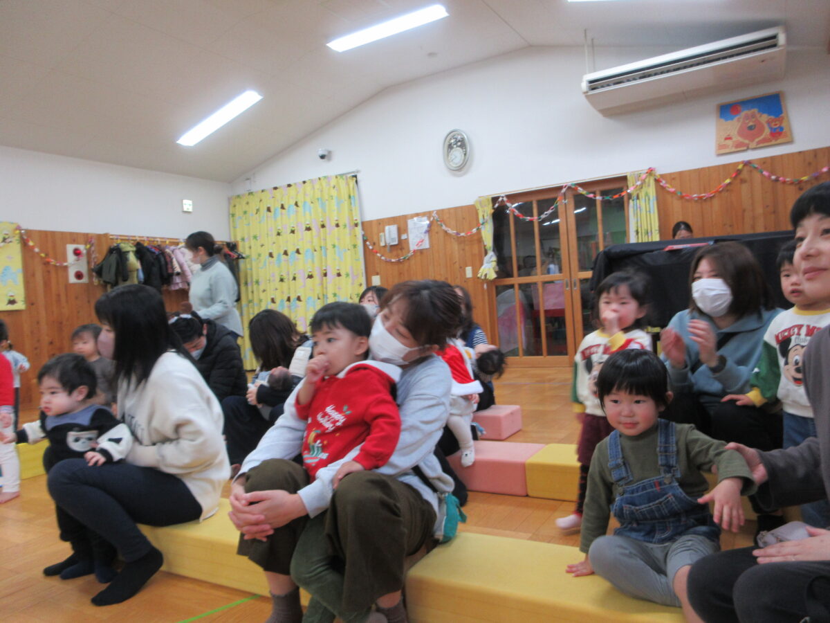 12月24日(木)に園のクリスマス会に参加しました!年少さん~年長さんの歌や踊りのプレゼントや年長さんのキャンドルサービスを見ました。曲に合わせて一緒に身体を動かしたり歌を歌ったり楽しく参加していました。サンタさん登場に大興奮!!プレゼントを直接貰うとビックリしたり「ありがとう」とお話ししたり一緒に写真を撮ったりとサンタさんとのひと時を過せました。今日はクリスマス☆皆さん素敵な一日を♡