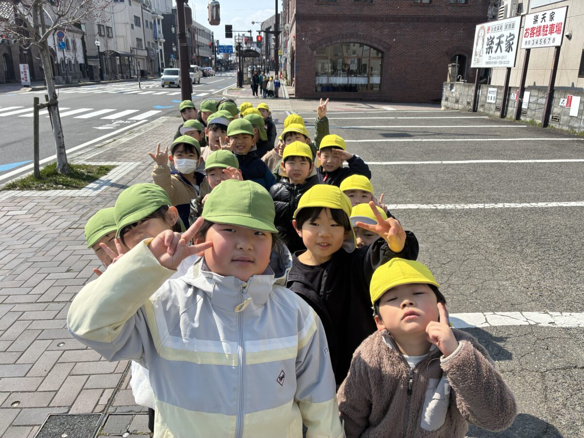 憧れのグレープ組さんともお散歩に行きました♪一緒に手をつなぎ、中央公園まで歩いて向かいます!