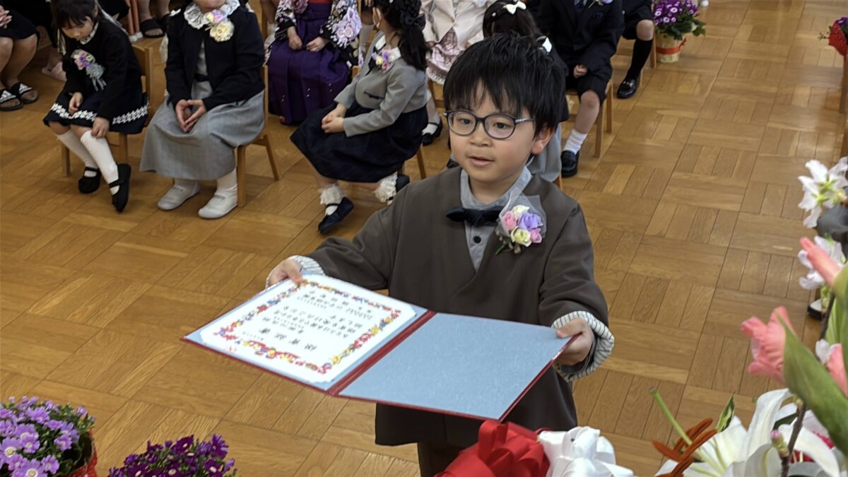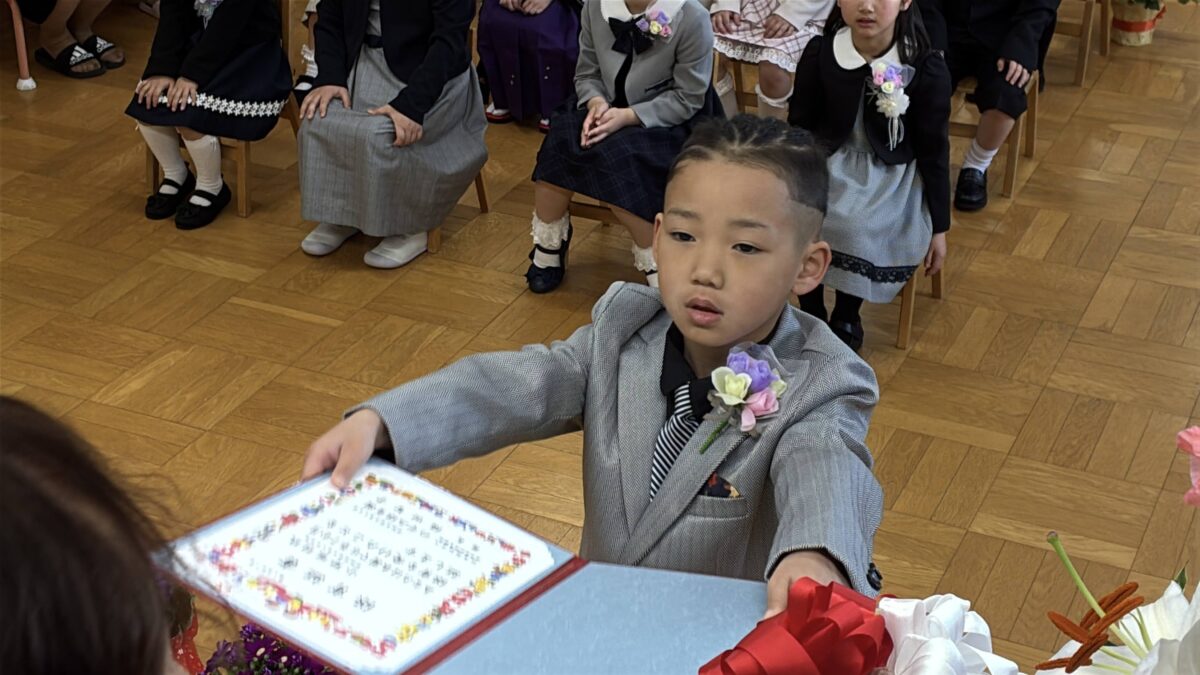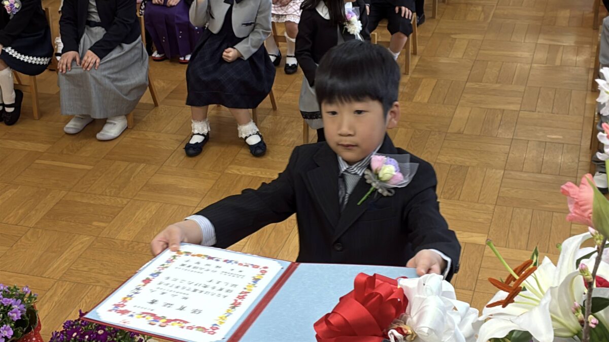 当日は少し緊張しながらも、堂々とした姿で式に臨む子どもたちの様子がとても印象的でした。入園当初の姿を思い返すと、その成長ぶりに胸がいっぱいになります。これまでの園生活の中で積み重ねてきた経験が、子どもたち一人ひとりの力となり、大きな自信へとつながっていることを感じました。また、日頃より温かく支えてくださった保護者の皆様に、心より感謝申し上げます。子どもたちのこれからの歩みが、笑顔あふれる素晴らしいものとなりますよう願っております。改めまして、ご卒園おめでとうございます。